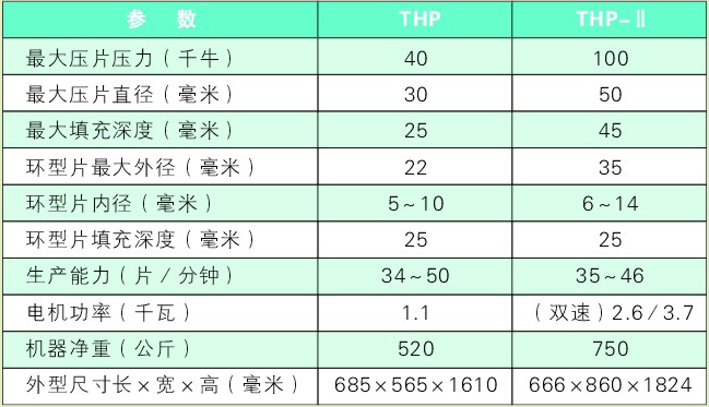 本机适用于制药、化工、食品等行业,将颗粒原料压制成片或冲剂的设备。可以压制各种异型、环型片剂,还可以压制双面刻有商标、文字及简单图形的片剂。